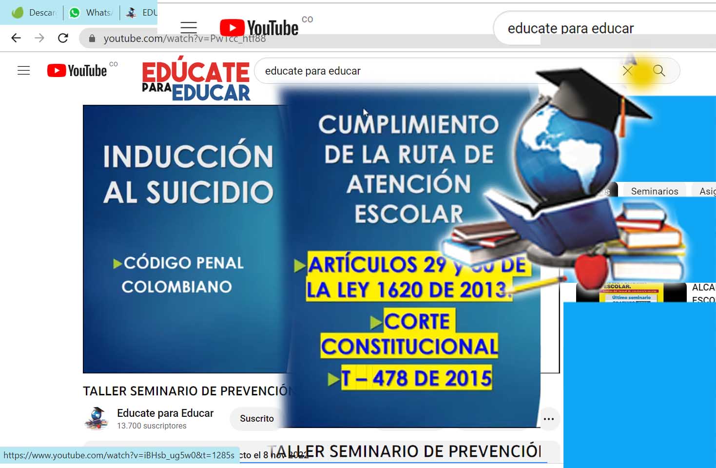 TALLER SEMINARIO DE PREVENCIÓN DEL SUICIDIO. Dirigida a los padres de familia, Acudientes y Cuidadores, cumpliendo, los componentes de prevención, atención y la misma ruta de atención escolar en sus artículos 29 y 30 de ley 1620 de 2013. Cumpliendo, con la exigencia de la Sentencia de Corte Constitucional, T – 478 de 2015.